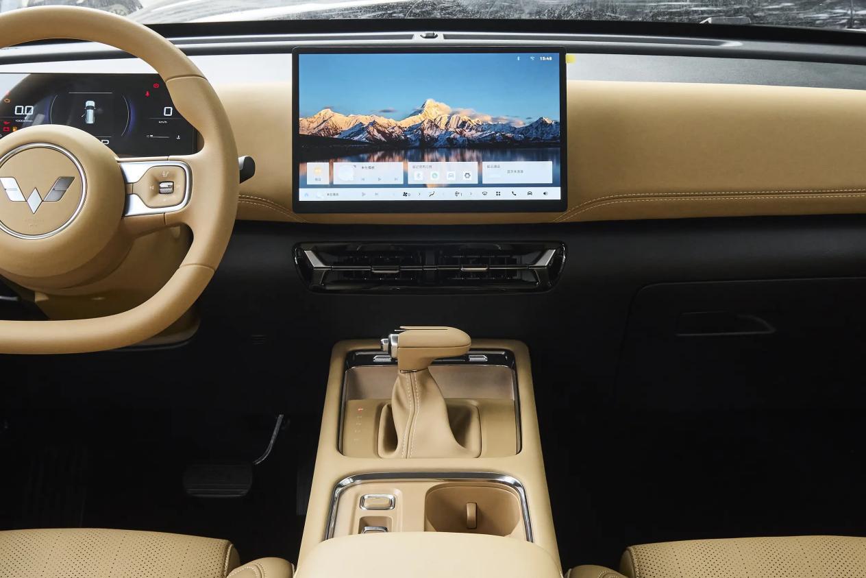 进入车内,星光560提供有胡桃棕与暖沙棕两种温馨的配色方案,车内的设计比较简洁,物理按键数量比较少。中控台布局了悬浮式液晶仪表盘与12.8英寸或15.6英寸触控屏,通过搭载Ling OS,车辆除了支持Carlink/HiCar手机互联以及DLNA手机投屏等功能。