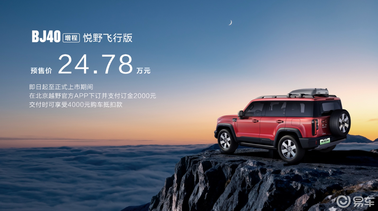 在硬派越野与智能科技的融合赛道上,BJ40增程悦野飞行版给出了新答案。预售价24.78万元,即日起支付2000元订金可抵扣4000元购车款,这款“领队首选”车型,把智能越野玩出了新高度。