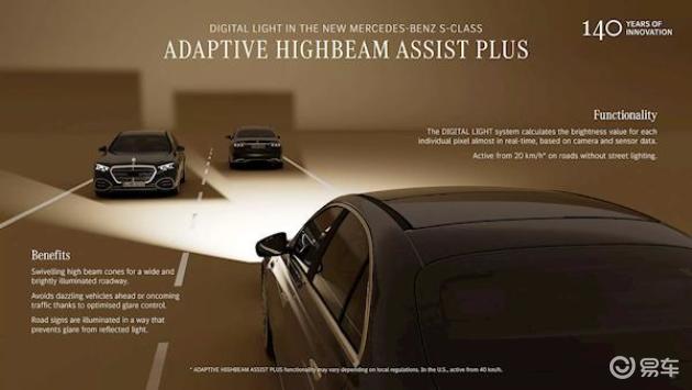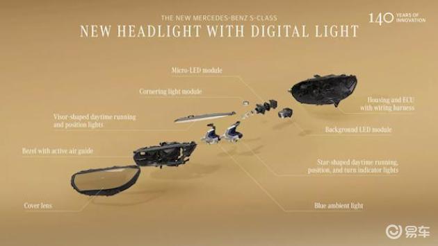 新款奔驰S级配备了品牌最新一代的Digital Light系统,每个大灯包含25,000个微型LED灯,两个大灯共有50,000个LED。