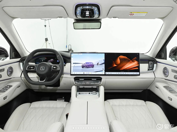 内饰方面其实在公布之前也出不多看过谍照了,极氪8X采用中控屏和副驾屏组成的双联屏设计,与理想汽车的双联屏类似。