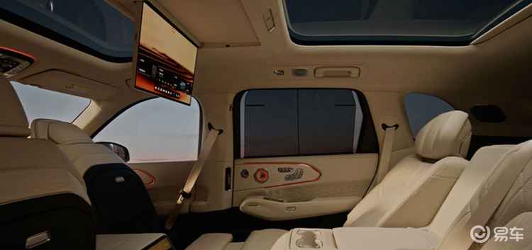 内饰的舒适性做的非常好,座椅按摩、加热和通风这些基操都有,后排也配备了吸顶屏,但是在车里看电视我个人还是觉得不理解,是不晕车还是窗外的风景太差?