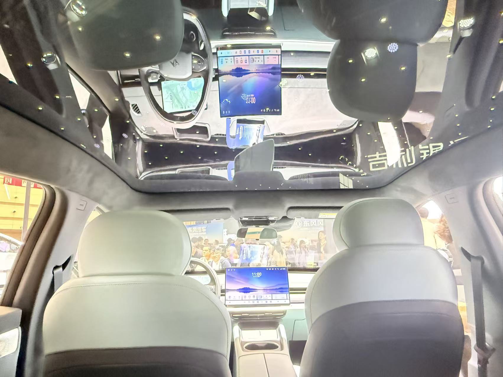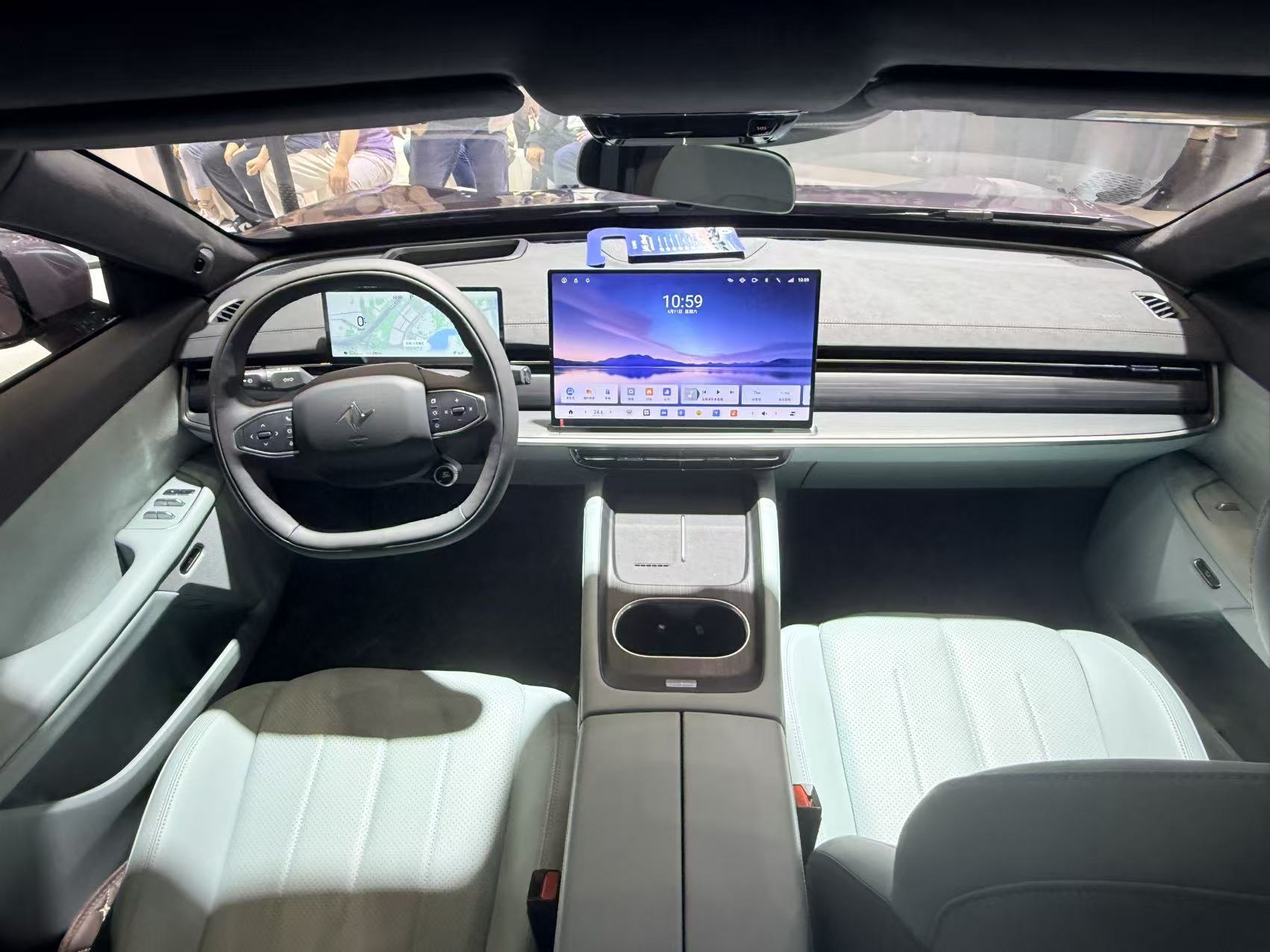 进入车内,内饰推出限定星环雾蓝及星际曜黑配色,座椅采用“臻柔亲肤面料”,搭载蝶影迎宾光毯、LED柔光美妆镜、后排发光Type-C充电口等贴心配置,配合麂皮绒顶棚与20扬声器,质感拉满。