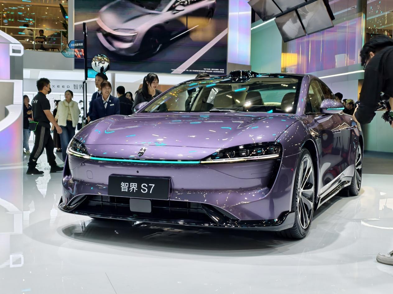 与R7同台亮相的2026款智界S7,以“极致纯净”的设计理念吸引不少关注。新车采用OneBox全新车身比例,0.203Cd的超低风阻系数堪称同级标杆,新增极光绿车色采用三重珠光漆工艺,光线变化时呈现丰富的随角异色效果。内饰新增罗兰紫配色,首次应用华为洛可可白“凝光贝母工艺”饰板,每一处纹理都独一无二,质感十足。