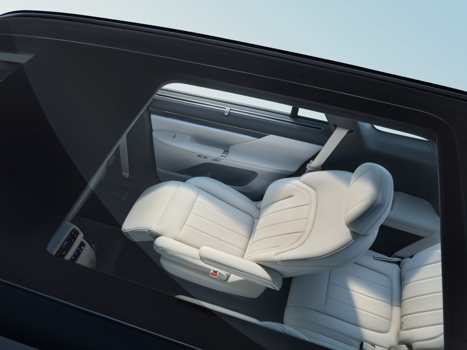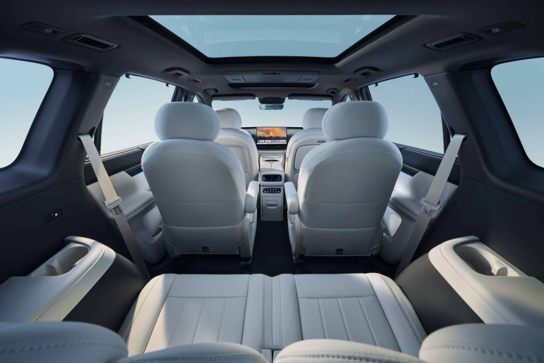 空间:5米车长、超3米轴距,真三排大六座布局,180mm宽过道。二排独立座椅,右侧零重力座椅升级10点按摩(力度/面积提升30%)、通风/加热及独立温控屏;主副驾8点按摩(提升30%),支持完全放平。